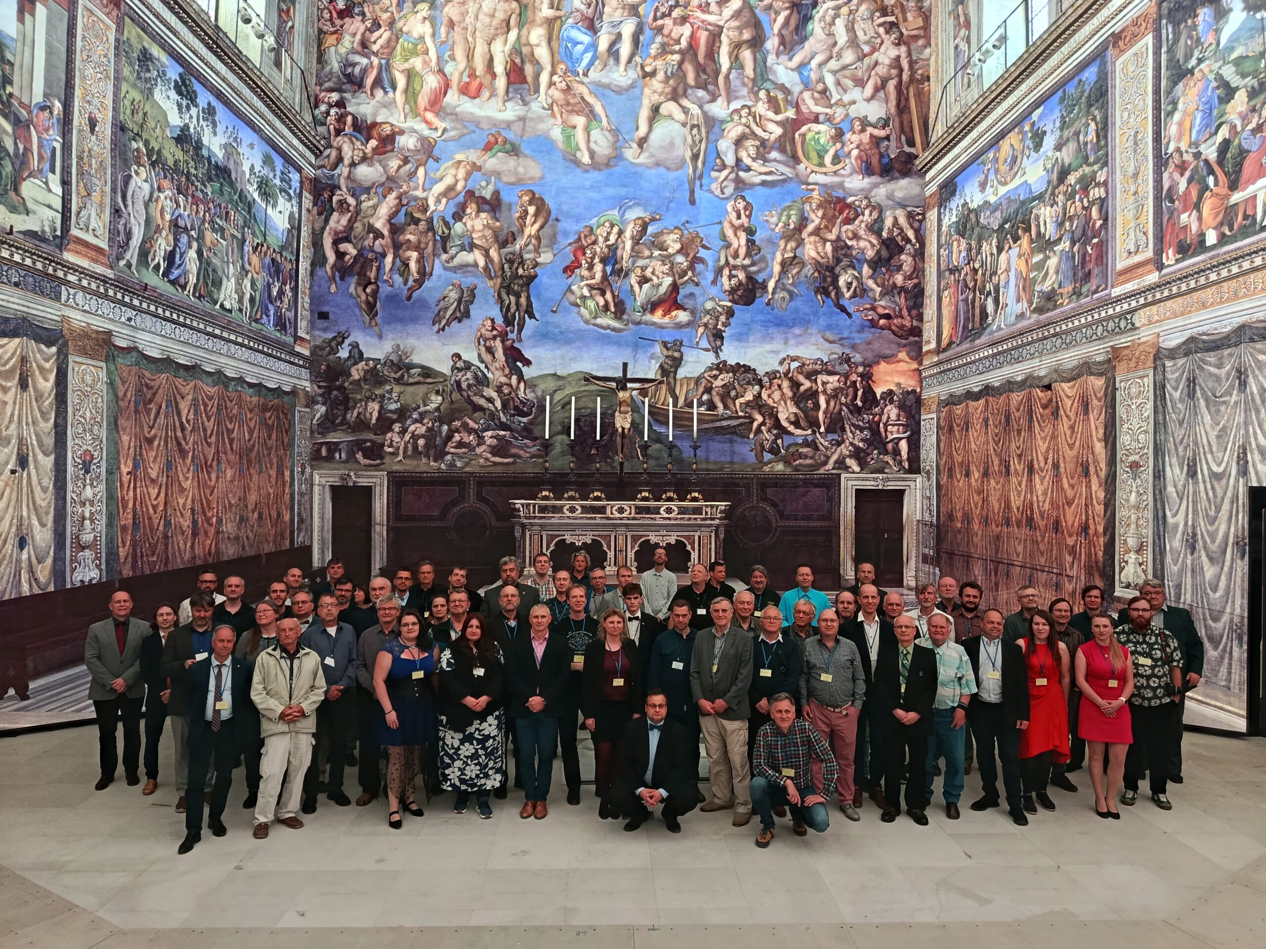 Účastníci 22. zjazdu ČAS pod kupolou nového planetária, ktoré sa premenilo na Sixtínsku kaplnku. (Foto: Jakub Toman, Planetum)