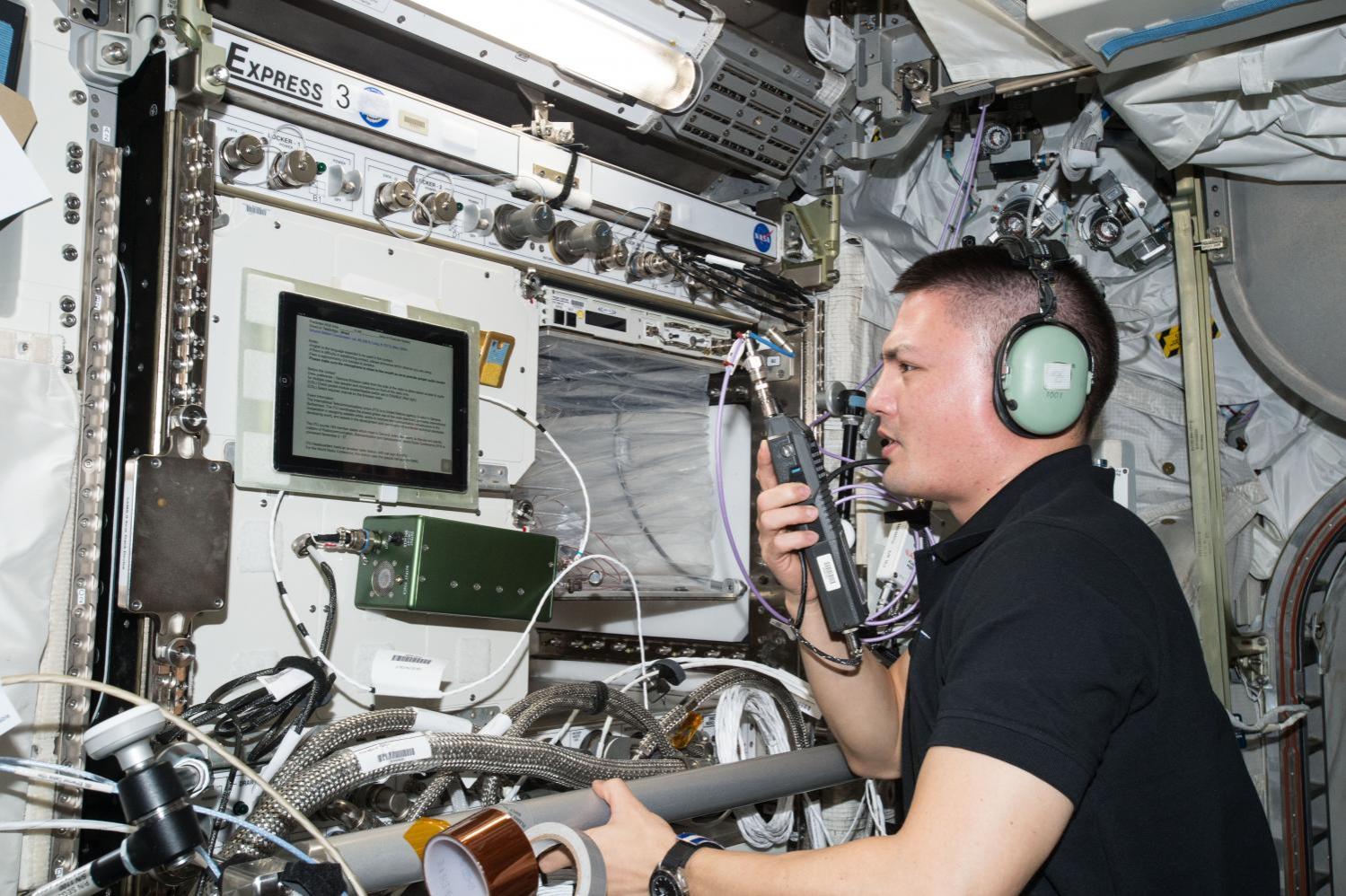 Astronaut Kjell Lindgren na palube ISS komunikuje so študentmi na Zemi v reálnom čase. (Zdroj: NASA)